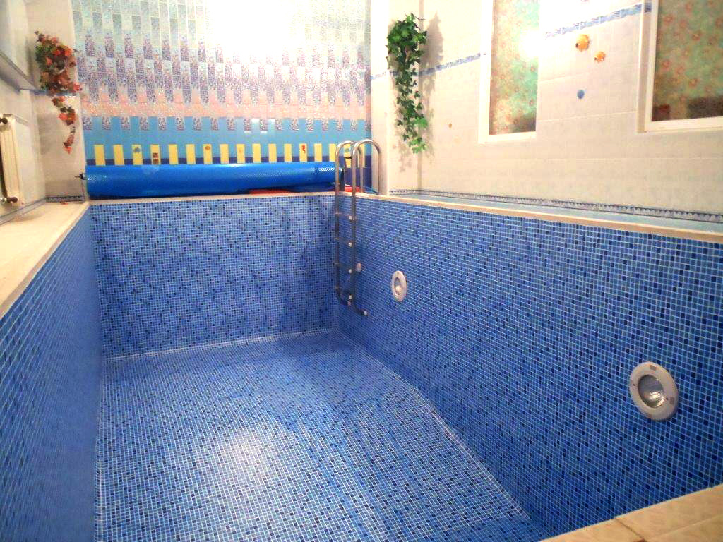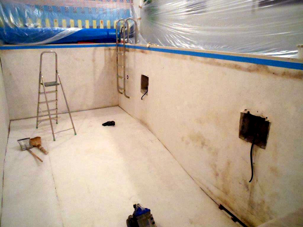 Реконструкция частного бассейна в поселке Снегири, Московская область. Произведен демонтаж старого покрытия и закладных прожекторов. Проведены работы по замене пленки ПВХ (AlkorPlan), установке прожекторов. Полная реконструкция системы фильтрации и автоматики бассейна.